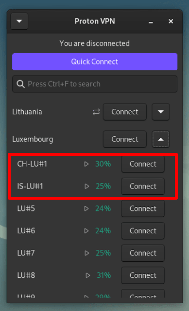 For example, CH-LU#1 indicates a Secure Core server, where the entry sever is located in Switzerland and the exit server is LU#1 (located in Luxembourg).